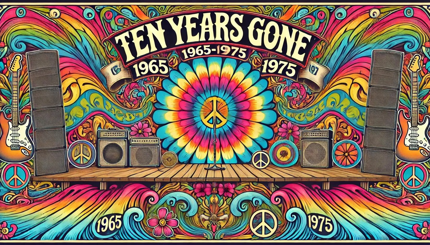 Join Ten Years Gone for the greatest music from 1965 to 1975, featuring songs from legendary artists and bands from the era. Don’t miss this unforgettable celebration of classic rock and counterculture vibes!